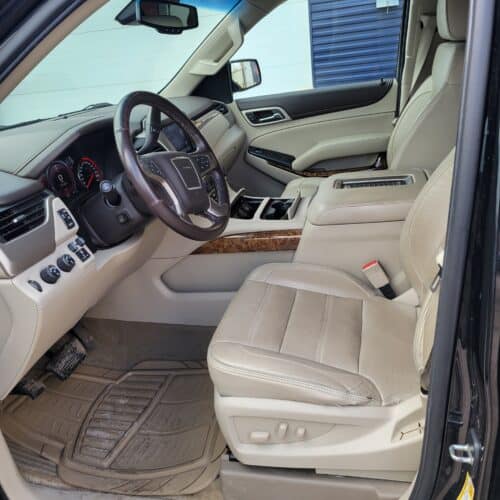 Step into luxury with the 2015 GMC Yukon Denali. This sleek SUV is ready to take you wherever you need to go, in total comfort and style. With its 6.2L V8, 8 speed transmission and tow package, this vehicle has no trouble taking on any terrain or hauling whatever you may need along your journey. On those colder days, snuggle up in the heated front and back leather seats while gripping the warm steering wheel – perfect for getting where you’re going fast! Stop down to Liedman Motors and take it for a spin!